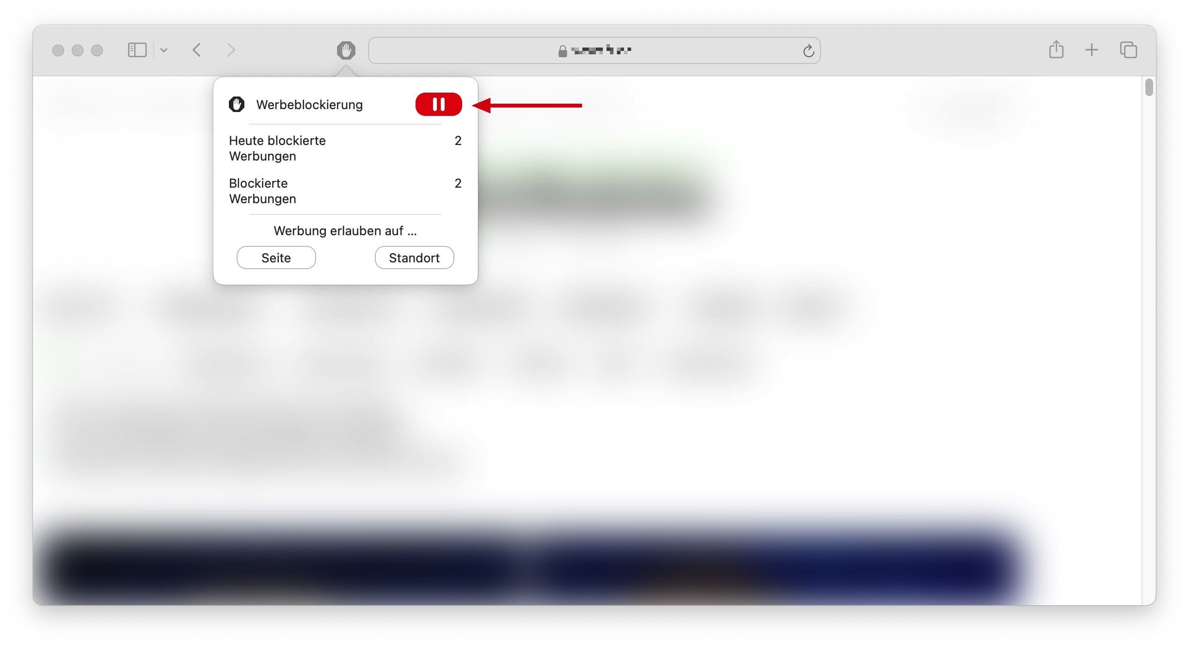 Left-click on the blue checkbox and remove the tick. This will deactivate the ad blocker on this page.