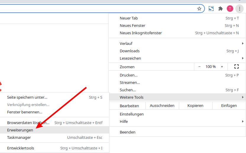 Now go with the mouse to the menu that just opened and press "Extensions".