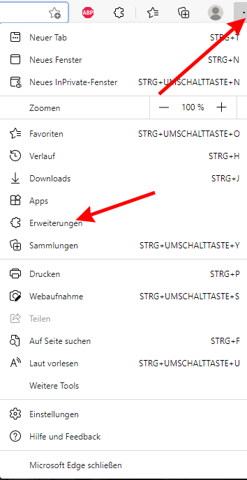 Now go to the "Extensions" item in this menu and press on it with the left mouse button.